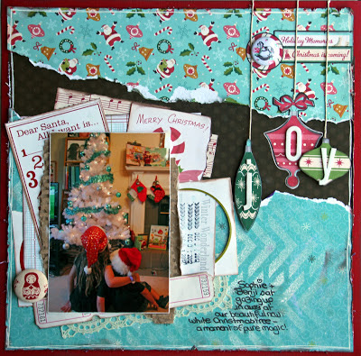 Anyway I have nothing new to share today as i have not had time to do much creating over the last few days. I do have this page that I did a few weeks ago for a sketch challenge though. I took this photo of Sophie and Benji just after we finished decorating our house at advent. I bought the white tree this year on impulse as I thought it was beautiful. I decided that we woud keep it as our 'designer' tree and get our real pine tree a little closer to Christmas for the kids to decorate with the little treasures that they make at school and kindy.
